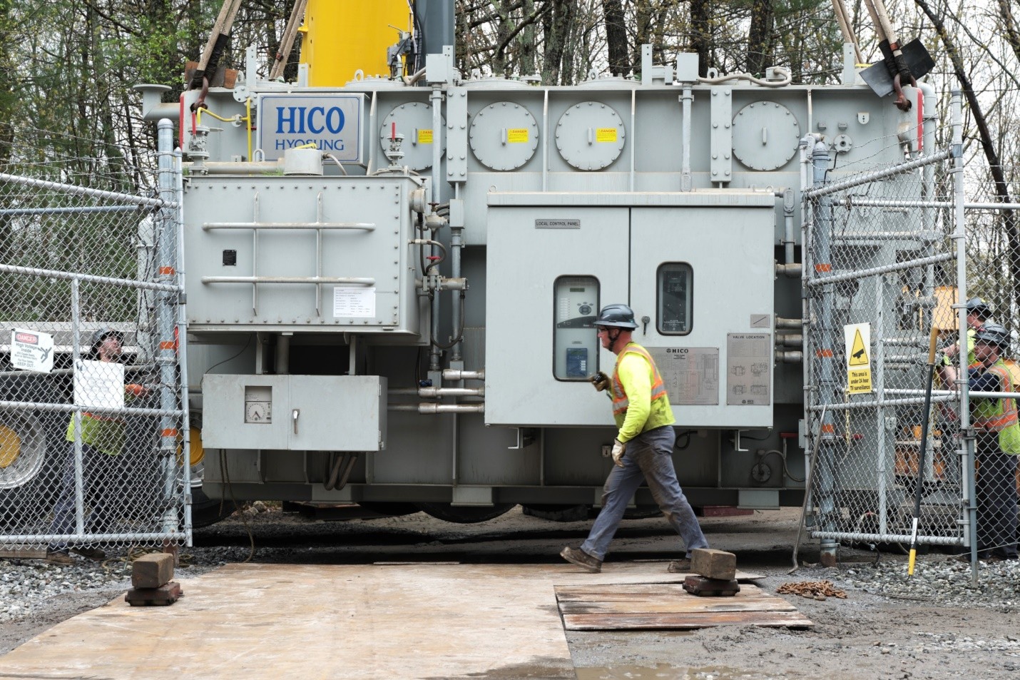 These improvements include the installation of a new transformer that was moved into the substation site in the Pride’s Corner area of the city on Wednesday morning using a large crane. Today, crews are placing the transformer, which weighs 105,000 pounds, into its final location in the substation and are beginning the formal installation process.